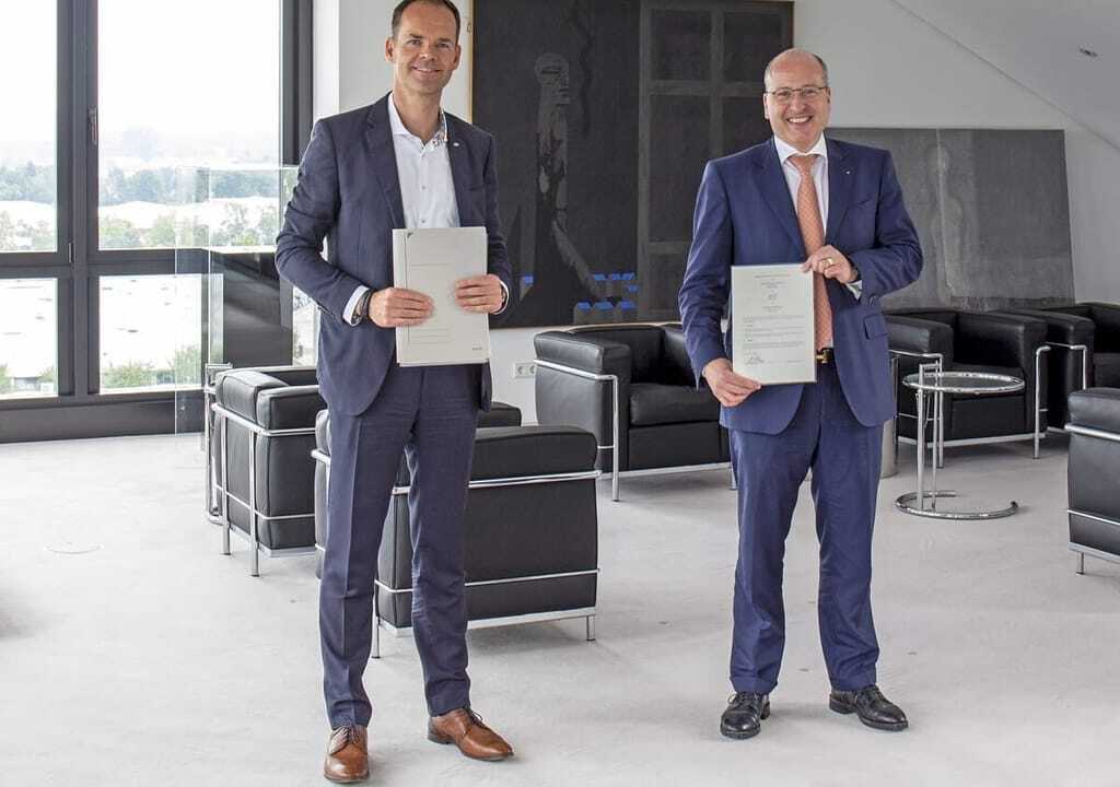 Haben die Fortführung der langjährigen Zusammenarbeit besiegelt: Kai Kruse(li.) und Olaf Piepenbrock. - © Piepenbrock