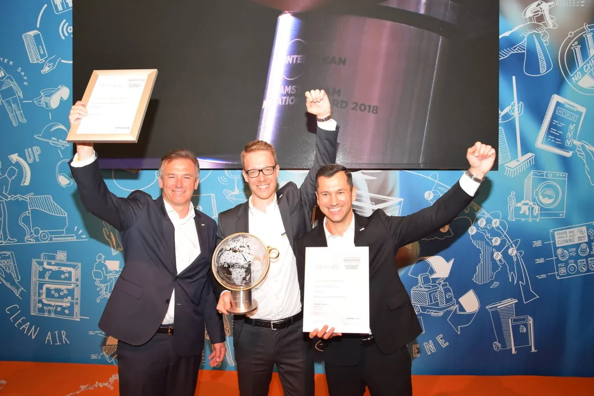 Der Preis wurde im Rahmen der internationalen Reinigungsfachmesse Interclean in Amsterdam verliehen – in diesem Jahr zum zwölften Mal und erstmals in vier Kategorien. Insgesamt gab es 89 Anmeldungen. Vor zwei Jahren hatten sich 66 Aussteller mit 110 Produkten beworben.