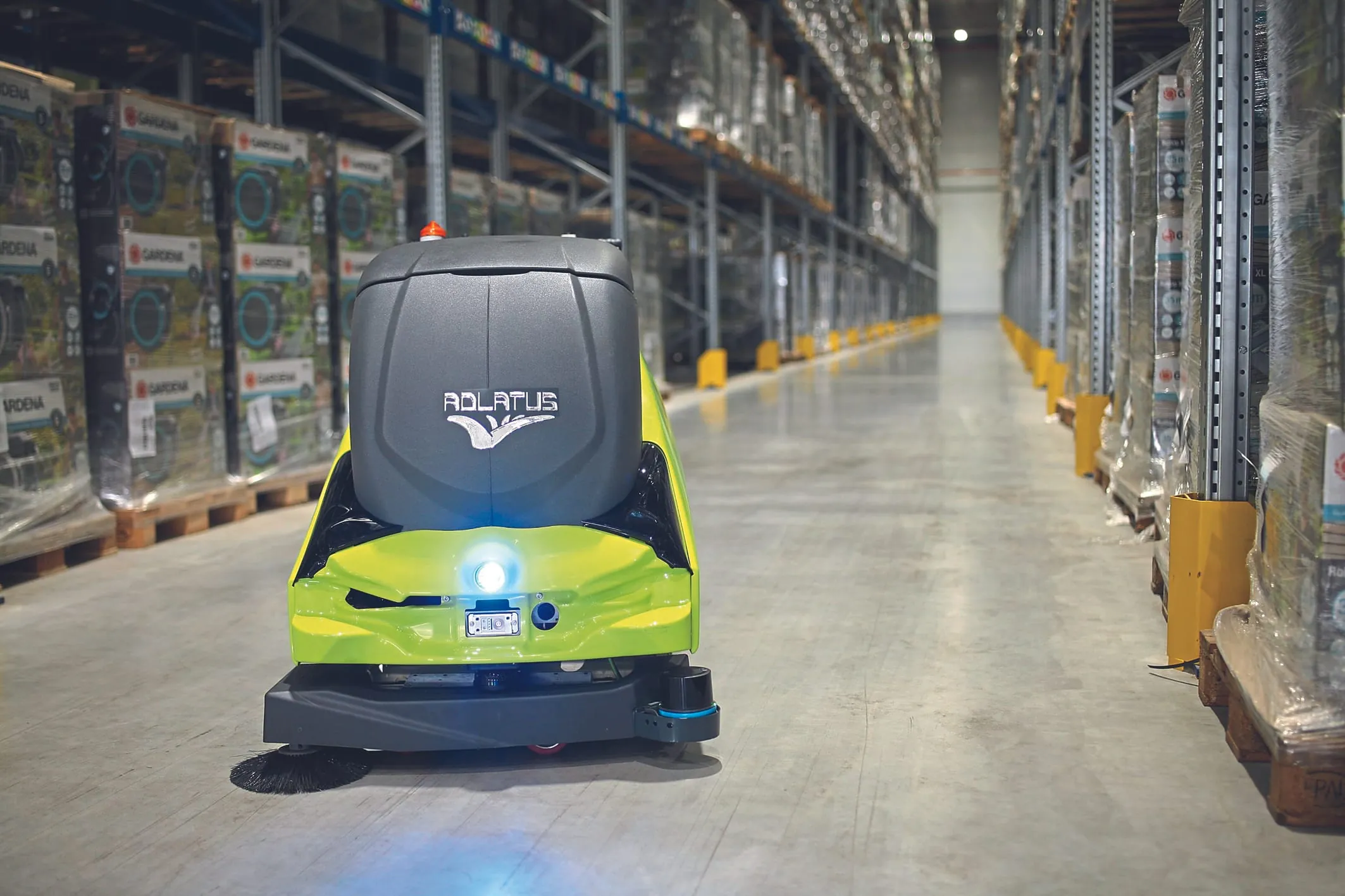 Je nach Anwendungsfall und Schmutzaufkommen bietet Adlatus vollautonome Kehrsaugroboter- oder Scheuersaugroboter-Systeme für den Logistikbereich, die alle mit einer Servicestation ausgestattet sind.