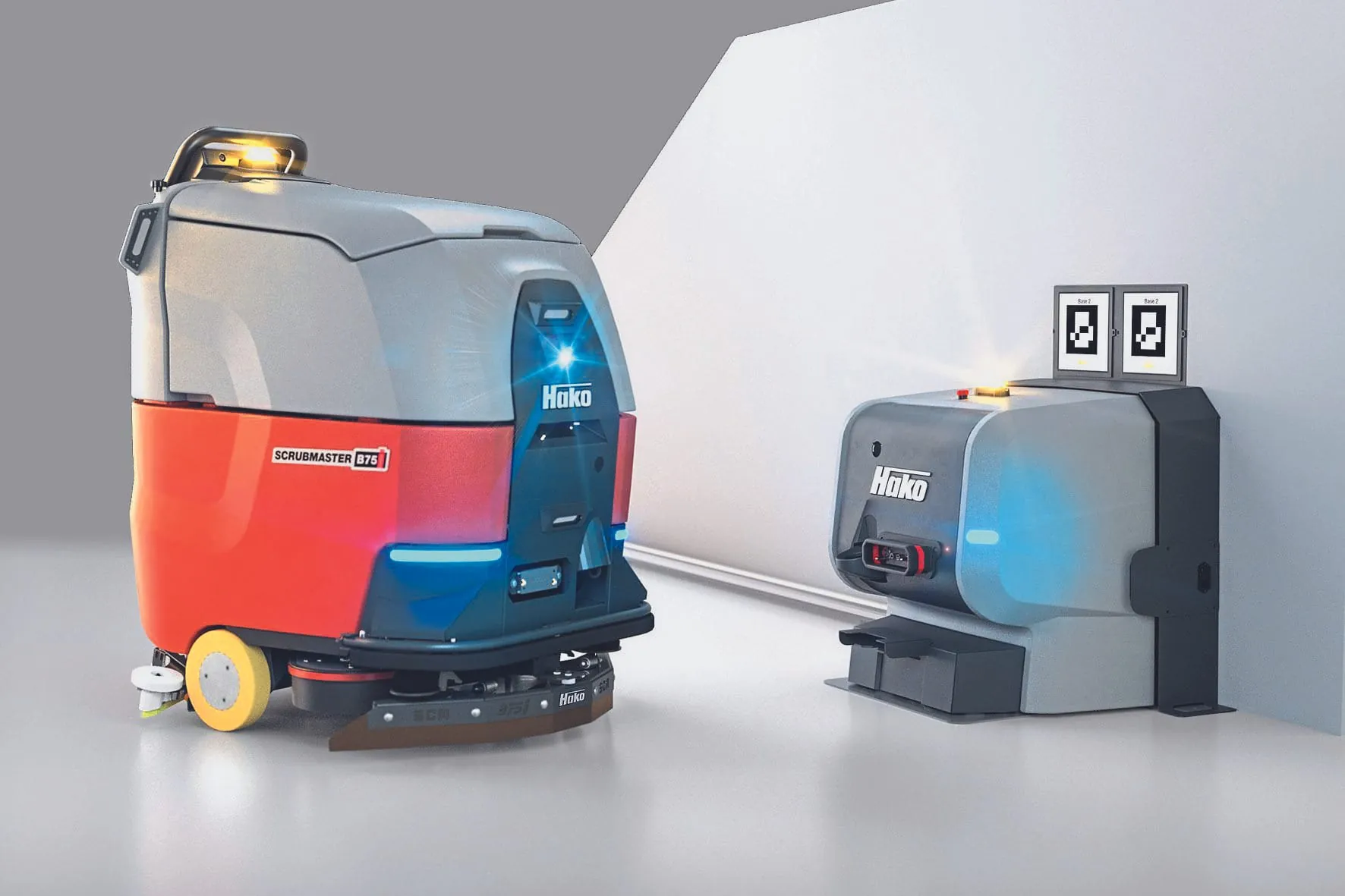 Zum Einsatz kommen diese Sensoren, deren Werte neben der Sicherheit auch zur Kartierung und Navi­gation verwendet werden, bei der Reinigung mit dem Scrubmaster B75 i, erläutert Dr. Nils Rottmann, Teamleiter Robotik bei Hako, und fährt fort: "Die ­autonome Scheuersaugmaschine reinigt angelernte Routen selbstständig und effizient. Unter Einhaltung der Sicherheitsnorm kann die mit Teller- oder Walzenbürste ausgestattete Maschine zu jeder Tages- und Nachtzeit sicher Reinigungsaufgaben ausführen." Um das Reinigungspersonal noch weiter zu entlasten, sei eine auf dieses Modell abgestimmte Dockingstation entwickelt worden, die ab 2024 verfügbar ist. Die Scheuersaugmaschine könne die Homebase selbstständig ansteuern und kopple sich automatisch an. Im Anschluss starteten die Prozesse Schmutzwasserentleerung, Frischwasserbefüllung und Akkuladung.