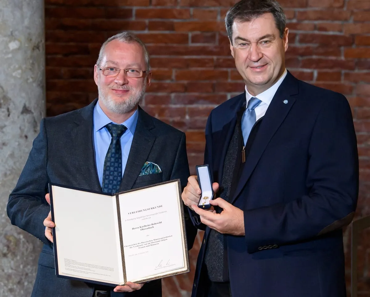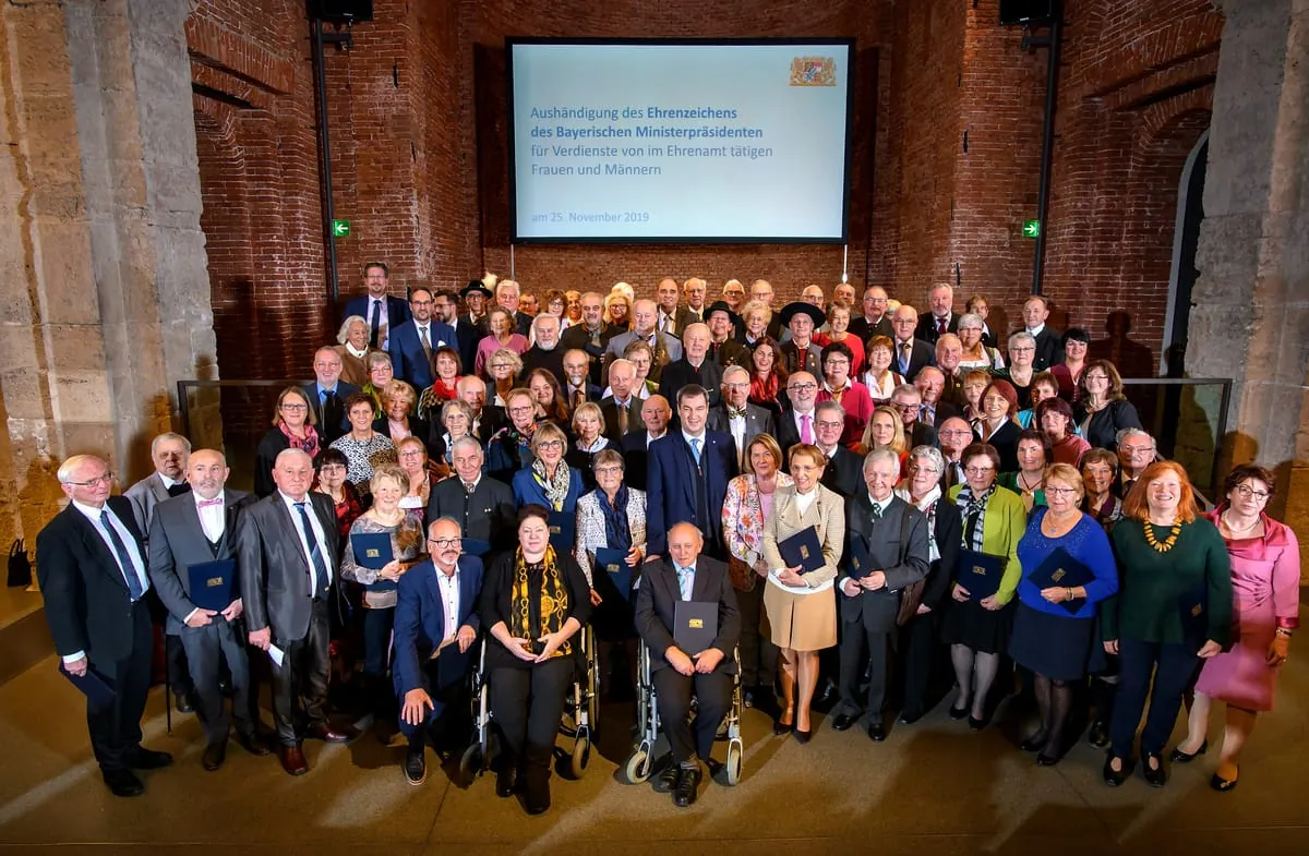 Ministerpräsident Markus Söder verlieh die Auszeichnung in der Allerheiligen-Hofkirche in München. Geehrt wurden Bürger, die sich in Vereinen und Organisationen langjährig und uneigennützig für die Gesellschaft engagieren. Das Ehrenzeichen wird seit 1994 verliehen.