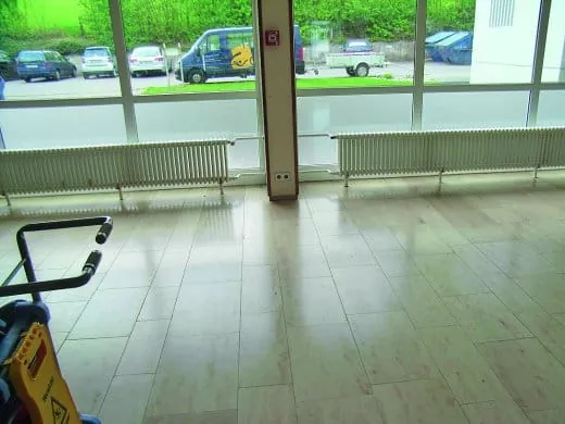 Grundreinigung, Kristallisation, End-Finish: Im Rahmen des Projektpraktikums „Reinigungs- und Hygienemanagement“ haben Facility-Management-Studierende der Hochschule Albstadt- Sigmaringen die Kristallisation eines Kalksteinbelags durchgeführt. Das Ergebnis: ein Juraboden mit deutlich mehr Glanz - und einem verbesserten Rutschhemmungspotenzial.