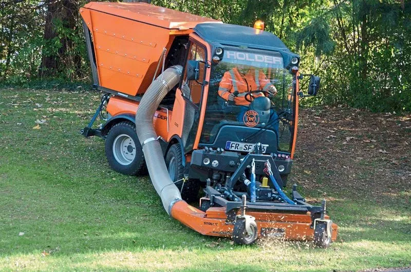 Mittlerweile will Edis Ferhati das neue Gefährt nicht mehr missen: „Mit dem Holder C 370 und dem angebauten Vierfach-Sichelmäher kann ich Rasenflächen unterschiedlichster Art bearbeiten – vom Sportplatzrasen über hügelige Parkflächen bis zu kleinen, winkligen Rasenflächen entlang von Straßen und Plätzen“, sagt Ferhati. Der C 370 ist mit einem Mähwerk von Stoll und einer Saugeinheit von GMR ausgestattet. Zwei von mehreren Anbaugeräteherstellern, die bei Holder als Premiumpartner gelistet sind. Vier gleich große Räder sorgen für perfekte Traktion selbst in steilen Lagen. Die Spur in Spur laufenden Vorder- und Hinterräder schonen empfindliche Rasenflächen und reißen selbst auf nassem Boden die Krume nicht auf. Seine Wendigkeit, enge Kurvenradien und der uneingeschränkte Blick auf das Geschehen halten den Rangieraufwand gering.