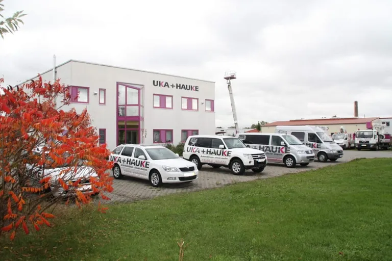 Uka+Hauke, gegründet 1992, verfügt neben dem Hauptsitz in Sömmerda bei Erfurt über Standorte in Chemnitz, Dresden und Gotha. Mit rund 20 Mitarbeitern vermietet das Unternehmen Hubarbeitsbühnen und Teleskopstapler.