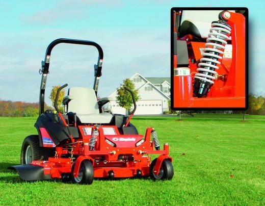 Schläge durch Bodenwellen oder hohe Fahrgeschwindigkeit beeinflussen nicht nur Material, sondern auch die Gesundheit des Fahrers eines Rasenmähers negativ. Iseki Deutschland bietet Zero-Turn-Mäher der Marke Ferris mit vollgefedertem Fahrwerk an. Die Räder sind einzeln mit einstellbaren Federelementen ausgestattet. Dadurch kann bei besserer Traktion im schwierigen Gelände die Fahrgeschwindigkeit erhöht werden, so dass die Flächenleistung steigt.