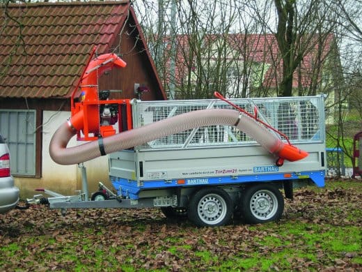 Ob Laub, Gras oder Leichtmüll: Die Laubverladegebläse LVG der Firma Stoll Landschaftspflege-Technik lassen sich auf Wegen, Rasenflächen und Plätzen vielseitig einsetzen. Die Saugkraft ist trotz geringer Motorstärken groß. Das liegt an der patentierten Absaugturbine. Selbst Papierkörbe können damit geleert werden. Mit dem serienmäßig bis 5 m langen Absaugschlauch (Durchmesser 200 mm) kommt man auch an schwer zugängliche Stellen. Die Ansaugöffnung der Turbinen ist schräg angeordnet. Dadurch gelangt das Sauggut direkt in den Luftkreislauf, Verstopfungen werden vermieden. Außerdem bewirkt die neue Turbinenform eine Geräuschreduzierung. Der Auswurfbogen lässt sich um 360 Grad drehen.