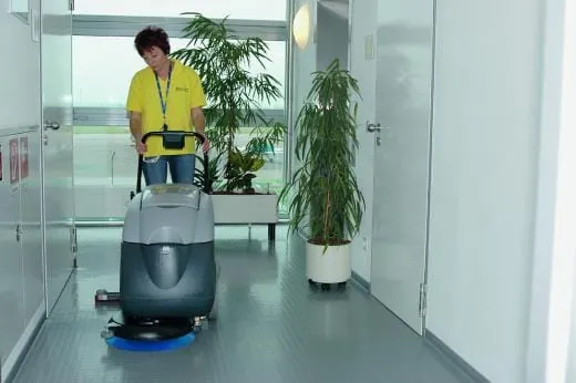 Für viele Dienstleister ist die Reinigung von Noppenbelägen auch heute noch eine Aufgabe, die sie am liebsten vermeiden würden. Zu oft wurden und werden mit diesem Belag bei der Reinigung negative Erfahrungen gemacht. Die RB-Dienstleistung hat sich dieser Aufgabe im Flughafen Rostock-Laage gleich mehrfach zu stellen: Ein grauer Gumminoppenbelag ist nicht nur in den Fluren des Verwaltungsgebäudes verlegt. Auch die Zugänge zu den Flugzeugen, von Fluggästen kurz „Finger“ genannt, sowie die Belade- und Entladezonen des Flughafens sind mit Noppenbelag ausgestattet. Die Reinigung dieses Belages wird im Verwaltungsgebäude und in den Einsteigetunneln dreimal wöchentlich durchgeführt, in den Versorgungsbereichen wird nach Bedarf gereinigt.