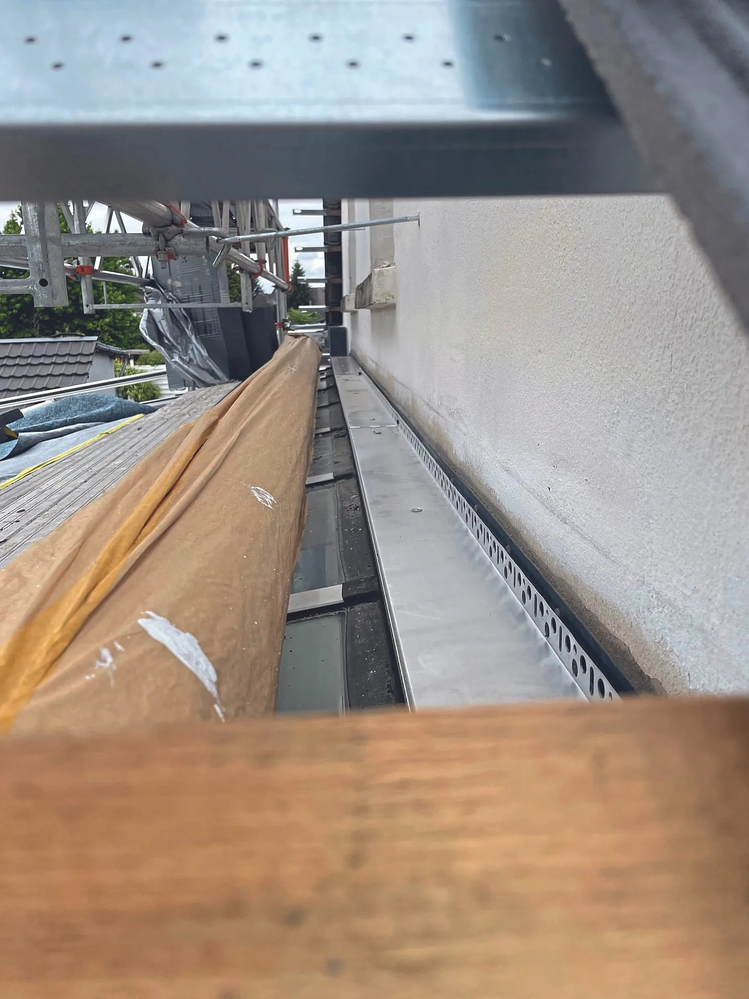 Neben den üblichen Abdeck- und Abklebemaßnahmen wurde die Verglasung zusätzlich durch Dämmplatten geschützt, damit auch ein eventueller Glasbruch durch beispielsweise herabfallendes Werkzeug ausgeschlossen wird. Beim Ortstermin wurde dem Sachverständigen zudem berichtet, dass an jedem Arbeitstag vor Aufnahme der eigentlichen Fassadenarbeiten die Abdeckmaßnahmen wieder hergerichtet wurden, damit das Glas und die Rahmenkonstruktion vor Beschädigungen geschützt sind.