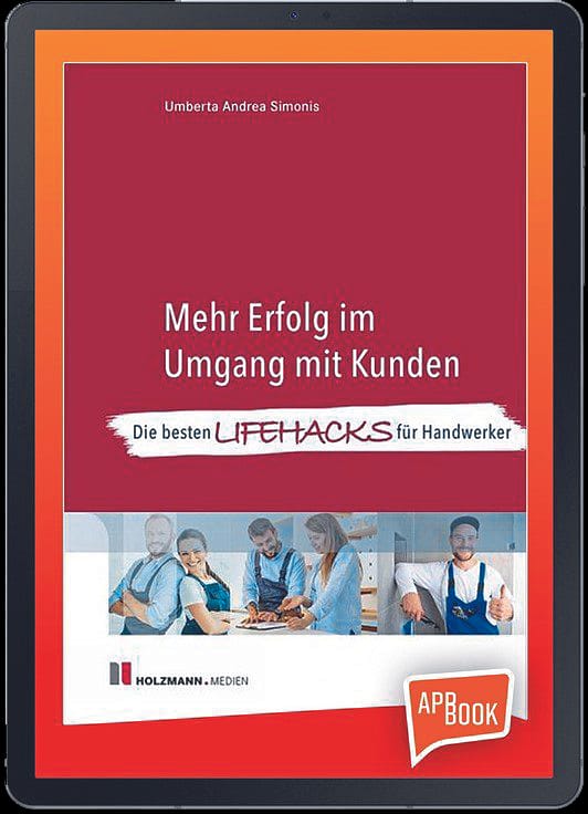 Umberta Andrea Simonis: „Mehr Erfolg im Um­gang mit Kunden. Die besten Lifehacks für Hand­werker.“ Holzmann Medien, Appbook, 3 Tage gra­tis testen, danach 24,90 Euro. https://is.gd/U1Lp22 - © Holzmann Medien