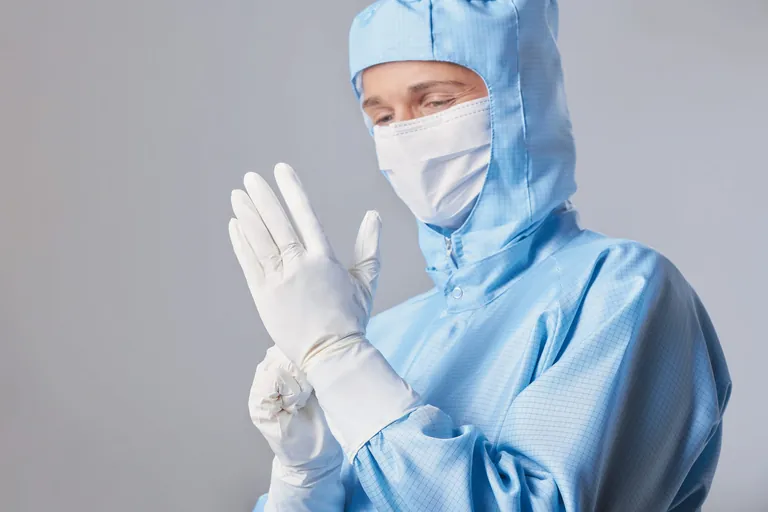 Die Reinraumbekleidung (Mewa Cleanroom) besteht aus einer Polyester-Carbon-Mischung. Sie wird nach Gebrauch beim Kunden abgeholt, in einem mehrstufigen, zertifizierten Wasch- und Sterilisationsverfahren auf Reinraumniveau gebracht und geschützt vor mikrobiologischen und partikulären Verunreinigungen wieder ausgeliefert..