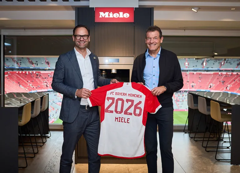 Miele und der FC Bayern München haben ihre Partnerschaft um drei Jahre verlängert. Herzstück der Kooperation bleibt die Miele Lounge in der Münchner Allianz Arena.