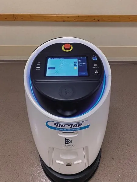 Die Abstimmungsprozesse dauern ihre Zeit, erzählt der Geschäftsführer. Inzwischen sind die meisten der Roboter im Betrieb, aber es ging eher schleichend voran. Es sind keineswegs nur technische Fragen, die zu lösen sind. Eine der Herausforderungen bestand zum Beispiel darin, Objekte zu wählen, die sich für den Einsatz eignen. Die Gebäudestruktur muss passen, die Aufteilung der Räume und die jeweilige Bodenbeschaffenheit. Der Roboter ist teilautonom und da er Aufsicht und Wartung braucht, muss auch die Arbeitsaufteilung zwischen Mensch und Maschine stimmen. Also das Verhältnis zwischen dem, was die Maschine in der Bodenreinigung leisten kann, und dem, was der Mensch außerdem leisten muss. Beides sollte in angemessenem und wirtschaftlich vertretbarem Verhältnis stehen. Deswegen kamen nur bestimmte Großobjekte in Frage, in denen sich die Roboter derzeit bewegen.