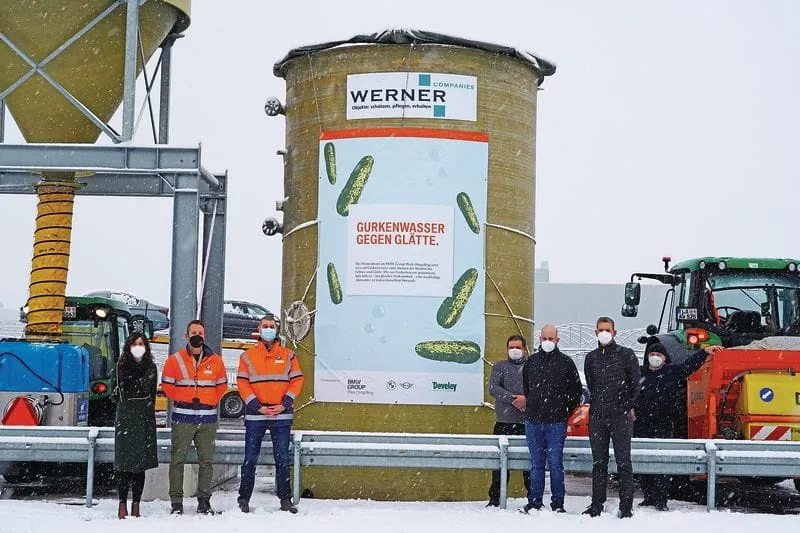 Der Einsatz von herkömmlichem Streusalz im Winterdienst ist unter anderem aus ökologischen Aspekten nicht unproblematisch. Auf den Verkehrsflächen des BMW-Werkes Dingolfing erprobte der beauftragte Dienstleister in den zurückliegenden Monaten, inwieweit Sole, die bei der Produktion von Essiggurken anfällt, eine nachhaltige Alternative gegen Glätte sein kann.