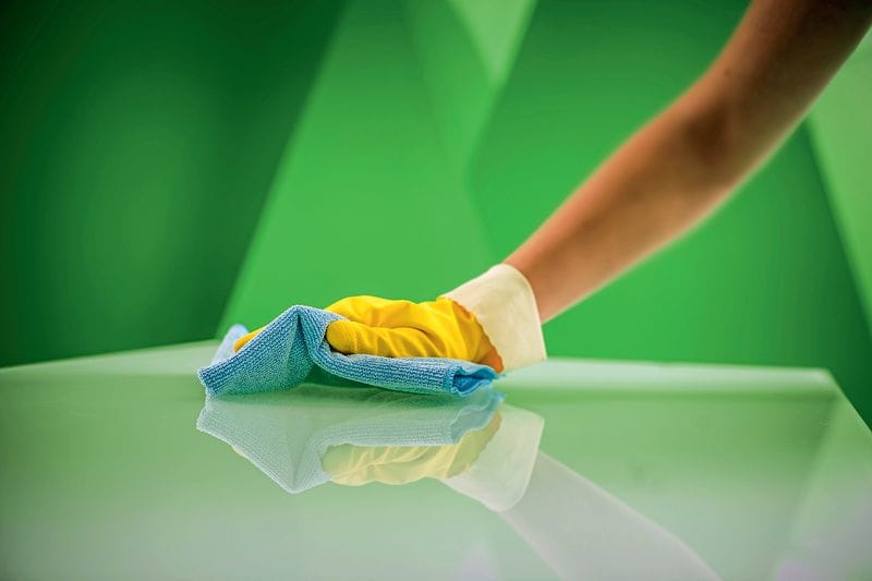 Das neue Mikrofasertuch r-MicroTuff Swift von Vileda Professional besteht zu 100 Prozent aus recyceltem PET. - © Vileda Professional