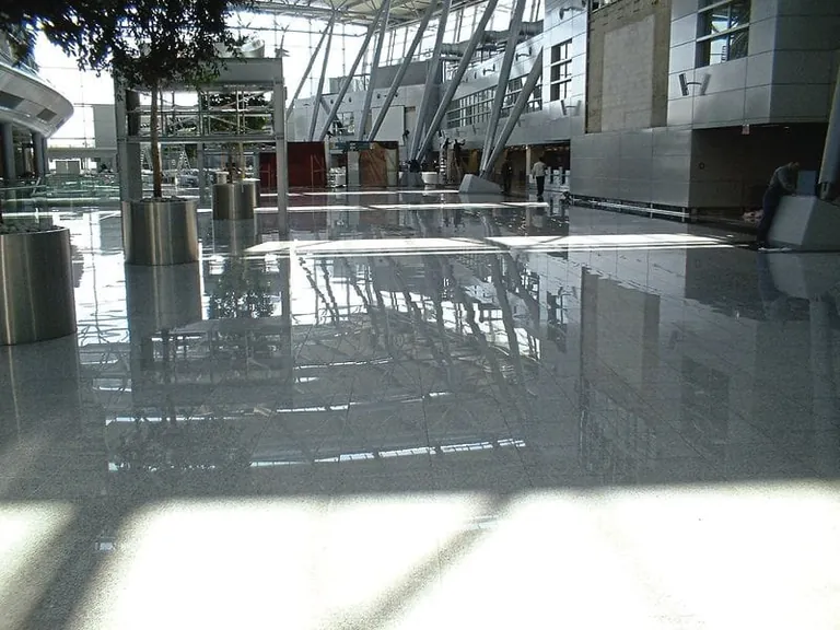 Am Flughafen Düsseldorf wurde konsequent auf Qualitätsmanagement gesetzt: leise Fugen, eine reinigungsoptimierte polierte Oberfläche (­teilweise mit LaserGrip-Trittsicherheitsausrüstung). - © Herbert Fahrenkrog