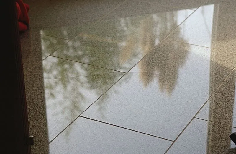 Auch die Art der Verfugung spielt eine Rolle. Sind die Bodenplatten nur abgezogen (das bedeutet, nur mit einer sehr kleinen Fase an der Kante versehen), dann kann man die Fugen bis oben füllen, so dass keine tieferliegenden Bereiche entstehen. Das verhindert nicht nur Schmutzablagerungen, sondern reduziert auch die Geräuschentwicklung, wenn man mit Koffern darüberfährt.