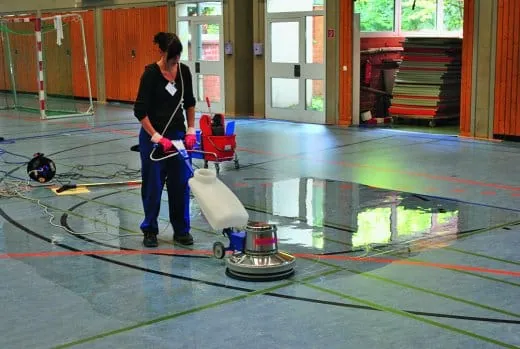 Das Berufskolleg Senne war Übungsfeld für den Wettbewerb, in dem diesmal besondere Aufgaben auf die Teilnehmer warteten: ein stark verschmutzter Linoleumboden in der Turnhalle, ein Steinboden in der Pausenhalle, eine Fassade und eine Sonnenschutzanlage.