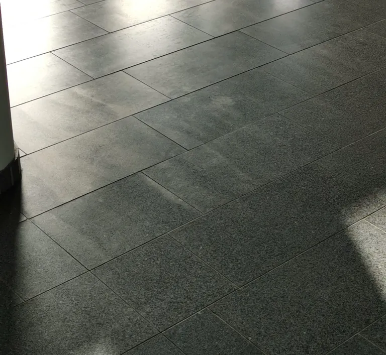 Ein Natursteinboden war durch hohen Schmutzeintrag und mangelhafte ­Reinigung ­unansehnlich geworden. Der beauftragte Dienstleister entschied sich für die ­Kristallisation des Bodens, die auf diesem Belag aufgrund des fehlenden Kalkes nicht funktioniert und ­somit keinen Erfolg hatte.