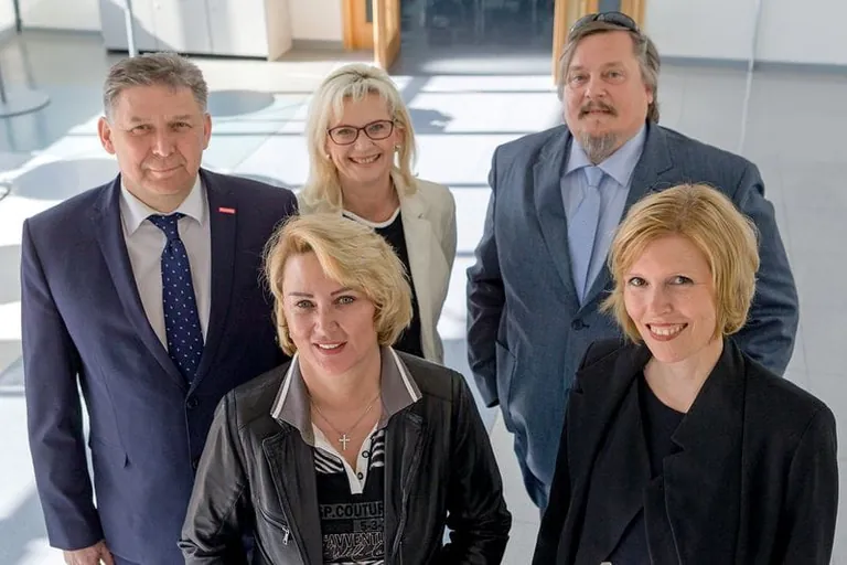 Geschäftsführer Volker Walters, Vorstandsmitglied Jutta Müller, Obermeister Kai-Gerhard Kullik (hinten v.li.) sowie Lehrlingswartin Elke Keufen und die stellvertretende Obermeisterin Stephanie Just (vorne v.li.). Bild: Innung - © Innung