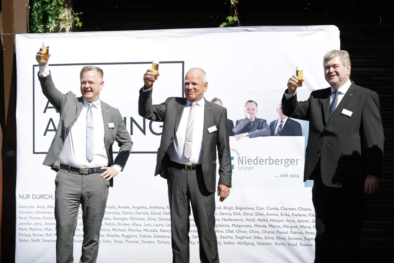 Rund 350 Besucher, darunter zahlreiche Mitarbeiter aus allen Niederberger-Betrieben mit ihren Familien sowie geladene Gäste aus Verbänden und Partnerunternehmen, nahmen an der Feier in der Kölner Eventlocation "Die Halle Tor 2" teil.