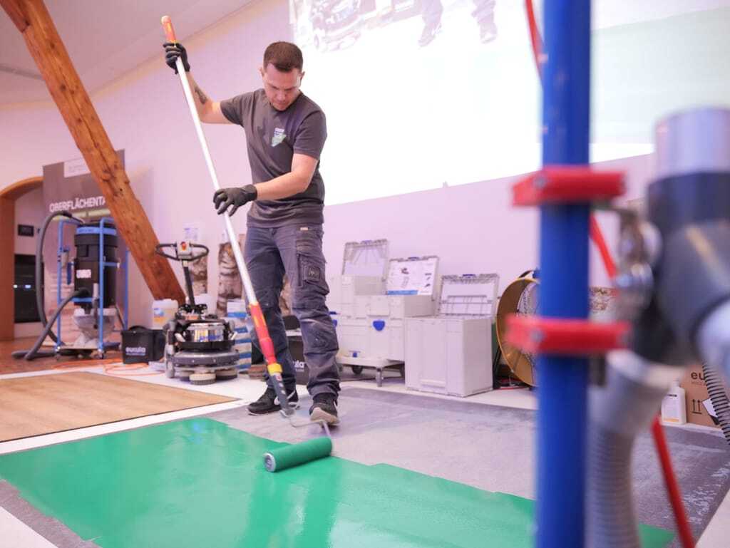 Am zweiten Tag fokussierte sich Ralf Edelmann auf das Eukula AAA-Konzept. Auf den Holzböden von Style Flooring demonstrierte er, wie das modulare Produktsystem gemeinsam mit dem neuen Multiscrubber einfach anzuwenden ist. Hier eröffne sich – neben der Anwendung durch Parkettleger – besonders für Gebäudedienstleister die Möglichkeit, bisherige Reinigungsdienstleistungen zu erweitern und Kunden mit natürlichen Böden gezielt anzusprechen.