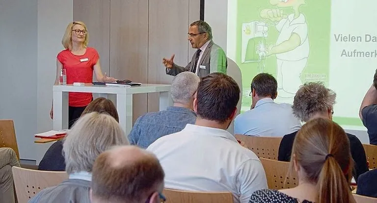 Patricia Bauer, Gesundheits- und Krankenpflegerin für Hygiene an der Evangelischen Lungenklinik Berlin, gab einen Einblick in ihre Arbeit mit dem System. OHMS wird dort in der Klinik für Pneumologie eingesetzt. Die Ergebnisse: Um mehr als 38 Prozent konnten die Händedesinfektionen pro Patiententag gesteigert werden, und auch die Qualität der Händehygiene (Entnahmemenge pro Desinfektion) zeigt seit der Systemeinführung einen positiven Trend.