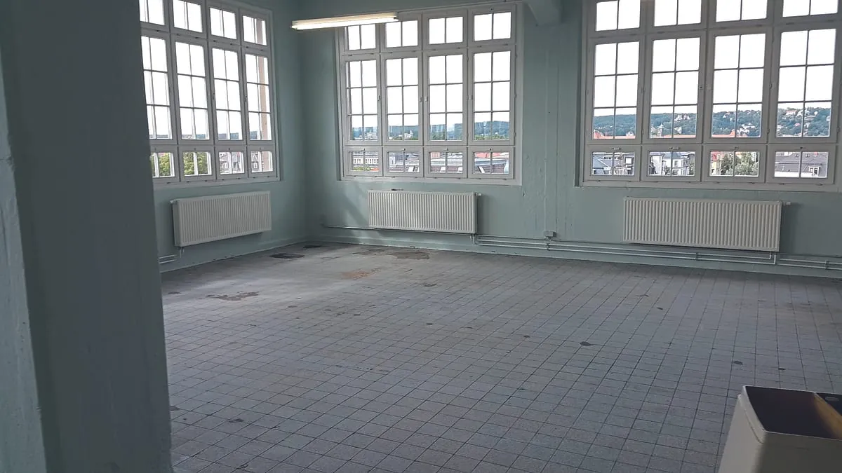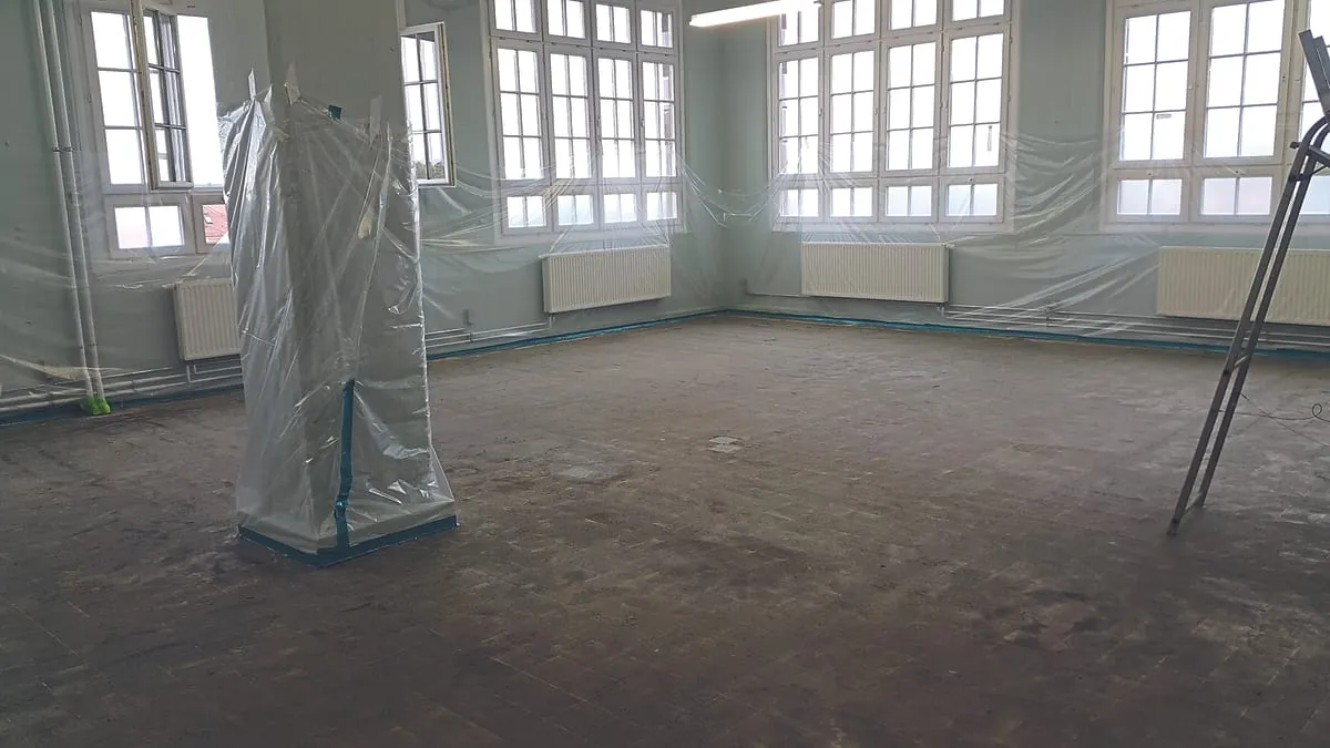 Die Ernemann Werke in Dresden sind ein Wahrzeichen der Stadt und beherbergen heute ein Museum. Für die nächste Schau in der ehemaligen Kamera-Fabrik wurde der Nadelfilz-Belag in der Museumswerkstatt entfernt. Zurück blieb eine dick mit Klebstoff überzogene Fläche. Zwei Unternehmen haben den Originalboden wieder freigelegt - wie bei einer Ausgrabung.