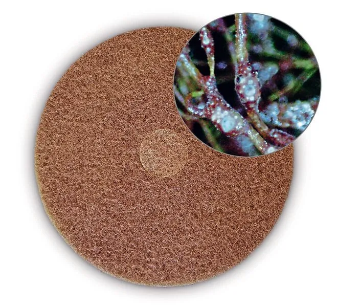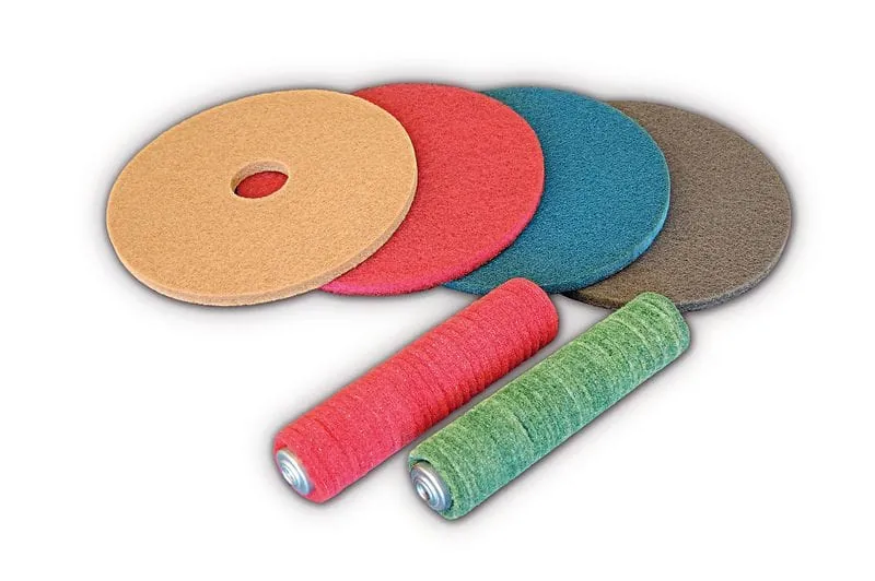 Nicht zuletzt gibt es noch Bürstenpads – ein Bürstenersatz, der universell einsetzbar ist mit rotierenden, oszillierenden und (Orbital-)Scheuermaschinen. Sie eignen sich insbesondere zur Reinigung von oberflächenstrukturierten Fußböden und verschmutzten Fugen.