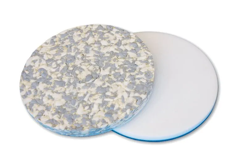 Bodenreinigungsscheiben aus Melaminharzschaumstoff, die auch als Schmutzradierer bezeichnet werden, sind gute Problemlöser für hartnäckige Verschmutzungen. Der hervorragende Reinigungseffekt dieser weißen oder auch weiß-grauen, feinstrukturierten Schaumstoff-Pads beruht auf der abrasiven Wirkung des harten Materials. Sie sollten ausschließlich nass zum Einsatz kommen. Bei der Verwendung werden sehr feine Melaminharzpartikel von dem Schaumstoffmaterial abgerieben, die wie ein extrem feines Scheuermittel wirken. Das heißt, der Melaminharzschaumstoff löst sich beim Reinigen allmählich auf. Besonders gut eignen sich Melaminpads beispielsweise zur Entfernung hartnäckiger Schmutzeinlagerungen bei mikroporösen Feinsteinzeugfliesen und fein geschliffenen Naturwerksteinbelägen. Pflegefilme von beschichteten Belägen werden durch die Anwendung von Melaminpads stumpf beziehungsweise fein zerkratzt.