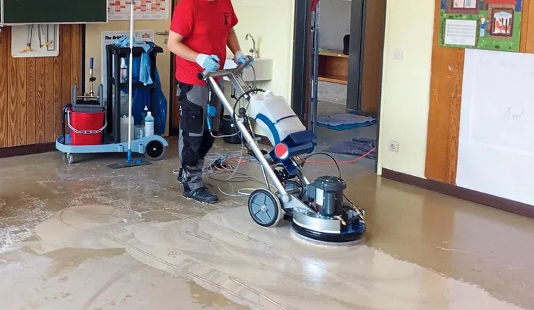 Zur mechanischen Unterstützung bei der Fußbodenreinigung sowie zum Schleifen und Polieren steht dem Gebäudereiniger eine Vielzahl von Produkten zur Verfügung. Zunächst ist die Frage zu klären, wann eine Bürste und wann ein Pad die bessere Wahl darstellt? Während Bürsten sowohl auf glatten wie auch auf strukturierten Oberflächen einsetzbar sind, eignen sich herkömmliche Padscheiben speziell für Bodenbeläge ohne Oberflächenstruktur.