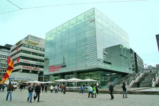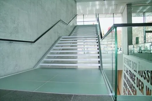 - Der moderne Glasbau gegenüber dem Schloßplatz in Stuttgart beherbergt eine Reihe von Künstlern wie Adolf Hölzel und Otto Dix. Pro Tag besuchen zwischen 300 und 1.500 Kunstinteressierte das Museum. In der „Langen Nacht der Museen“, die die Landshauptstadt mehrmals im Jahr veranstaltet, können es auch mal 6.000 sein. Um den gebührenden Rahmen für die Werke zu schaffen, hatte die Stadt Stuttgart das Berliner Architekturbüro Hascher + Jehle mit der Umsetzung betraut. Es war 1999 als Sieger aus dem internationalen Wettbewerb hervorgegangen. Die Architekten brachten einer Reihe sehr edel wirkender Materialen ein.