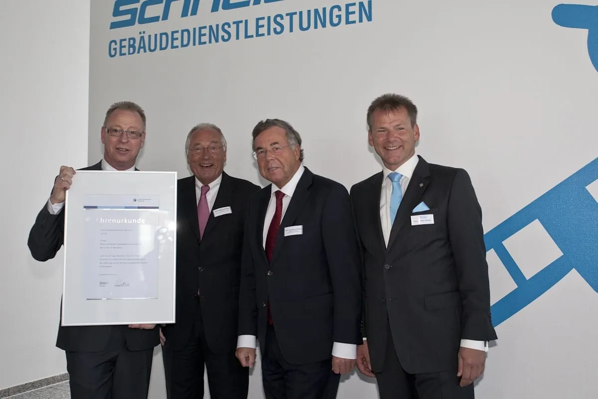 Bei der Jubiläumsfeier in Hannover würdigte er die lange erfolgreiche Geschichte von Peter Schneider Gebäudedienstleistungen. „Ihnen ist es als Familienbetrieb mit großem Engagement und herausragender Kreativität gelungen, manche Krisen wie Krieg und Wirtschaftsflauten erfolgreich zu meistern“, sagte Bode und fügte hinzu: „Ich weiß nicht, was Sie mit Ihrem hochmotivierten Team überhaupt aus der Bahn werfen könnte. Also: Weiter so“.