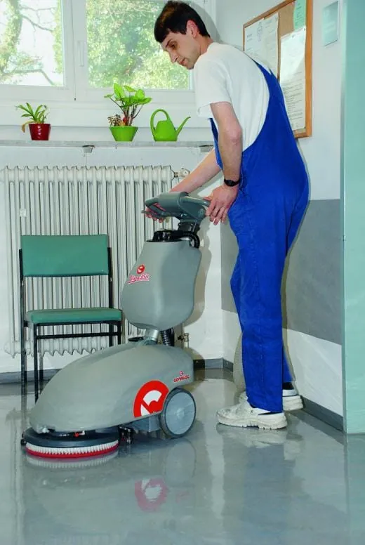 Der batteriebetriebene Nassschrubbautomat Vispa 35 B ist als Alternative zur manuellen Reinigung positioniert und be sonders für kleine, verwinkelte Objekte geeignet.