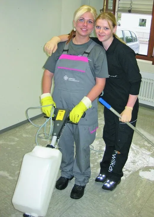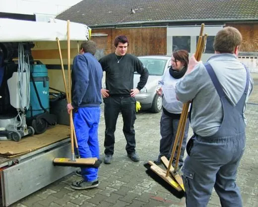 - „So freundliche, hilfsbereite Schüler können Sie mir wieder schicken“, sagt Frau Haag, Leiterin der Hauswirtschaft in der Diakonie Metzingen. Mit einem zufriedenen Lächeln betrachtet sie den grundgereinigten, neu eingepflegten, glänzenden Boden. Die hässlichen Flecken sind nicht mehr zu sehen. Wegen dieses Problems hatte Frau Haag Kontakt zu Lehrern des Bereichs Gebäudereinigung an der Gewerblichen Schule Metzingen aufgenommen. Denn zum Tag der offenen Tür in den neu bezogenen Räumen sollte Ende März alles glänzen.
