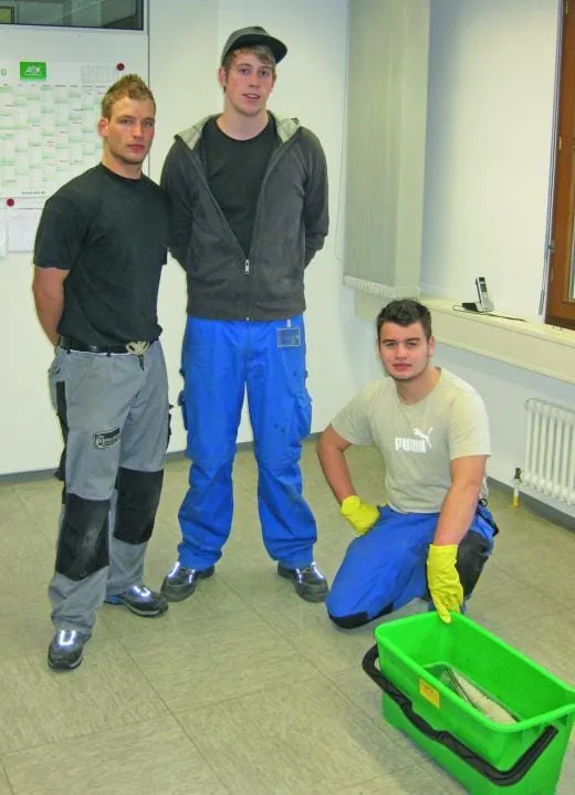 Am zweiten Tag sind die Schüler der Klasse B3GR7 an der Reihe und nehmen sich die restlichen Räume vor. Auch diese Gruppe zeigt ihr Können und freut sich über Lob und kritische Bemerkungen als Ansporn, die eigene Arbeit zu verbessern, so dass bei der Gesellenprüfung alles wie am Schnürchen läuft.