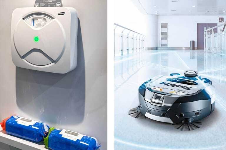 Neben den beiden Siegerprodukten waren in der engeren Wahl: der Ultraschall-Toilettenreiniger Bubble Flush von Wecovi/C.A-L. Italia, der Reinigungsroboter R3 Scrub von Lionsbot und ein digitales Schädlingsbekämpfungssystem von Envu.