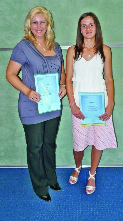 - Von 20 Teilnehmern des kürzlich beendeten Lehrgangs „Geprüfte/r Objektleiter/-in“ in Köln haben drei Teilnehmerinnen herausragende Leistungen erbracht: Yvonne Jasinski (H. Braun Gebäudereinigungs- und Dienstleistungs GmbH, Marl), Renita Zaynisheva (Gebäudereinigung C & S Wolff, Gevelsberg) und Ute Schwarz (Gebäudereinigung Eichenauer, Siegen). Yvonne Jasinski und Renita Zaynisheva wurden dafür Mitte Juli vom Landesinnungsverband des Gebäudereiniger-Handwerks Nordrhein-Westfalen in Köln geehrt in Anwesenheit ihrer Geschäftsführer. Ute Schwarz war an dem Tag verhindert.