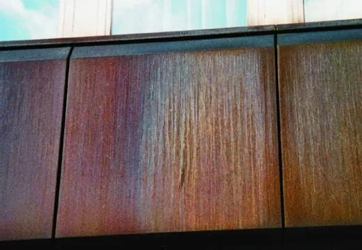 Bei Bewitterung können sich durch Umwelteinflüsse auf der Oxidschicht Witterungsbeläge bilden, die nicht mit Verdichtungsbelägen zu verwechseln sind. Fälschlicherweise bezeichnet man solche Oberflächenbeläge oft als „Schmant“, wobei „Schmant“ einen Verdichtungsbelag charakterisiert. Meistens wirkt sich das optische Bild so aus, dass ein Schillern in Regenbogenfarben entsteht.
