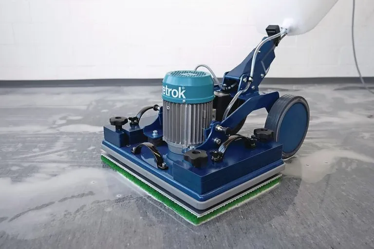 Wetrok stellt eine neue Exzentermaschine vor: Die Durodisc X ist dank ihres Exzenterantriebs besonders leicht zu führen und eignet sich daher im Gegensatz zu einer klassischen Einscheibenmaschine ideal für unerfahrenes oder zierliches Personal. Zwei weitere Vorteile: Die Exzentermaschine ist rechteckig (statt rund) und bewegt sich sanft schwingend vorwärts und rückwärts (statt seitwärts). Der große Sicherheitsvorteil: Ein Entgleiten der Maschine oder ein Verheddern des Kabels sind durch diese Fortbewegungsrichtung ausgeschlossen. Aufgrund ihrer rechteckigen Form gelangt die Maschine in jede Ecke und nimmt dem Personal die manuelle Randreinigung ab. Für das Reinigen oder Schleifen werden je nach Bedarf einfach die Gewichtsplatten ausgetauscht. Körperschonend erfolgt der Padwechsel: Dafür legen Reinigungskräfte einfach das Fahrgestell um und erledigen die Arbeit ohne Hinknien oder Verrenkungen.