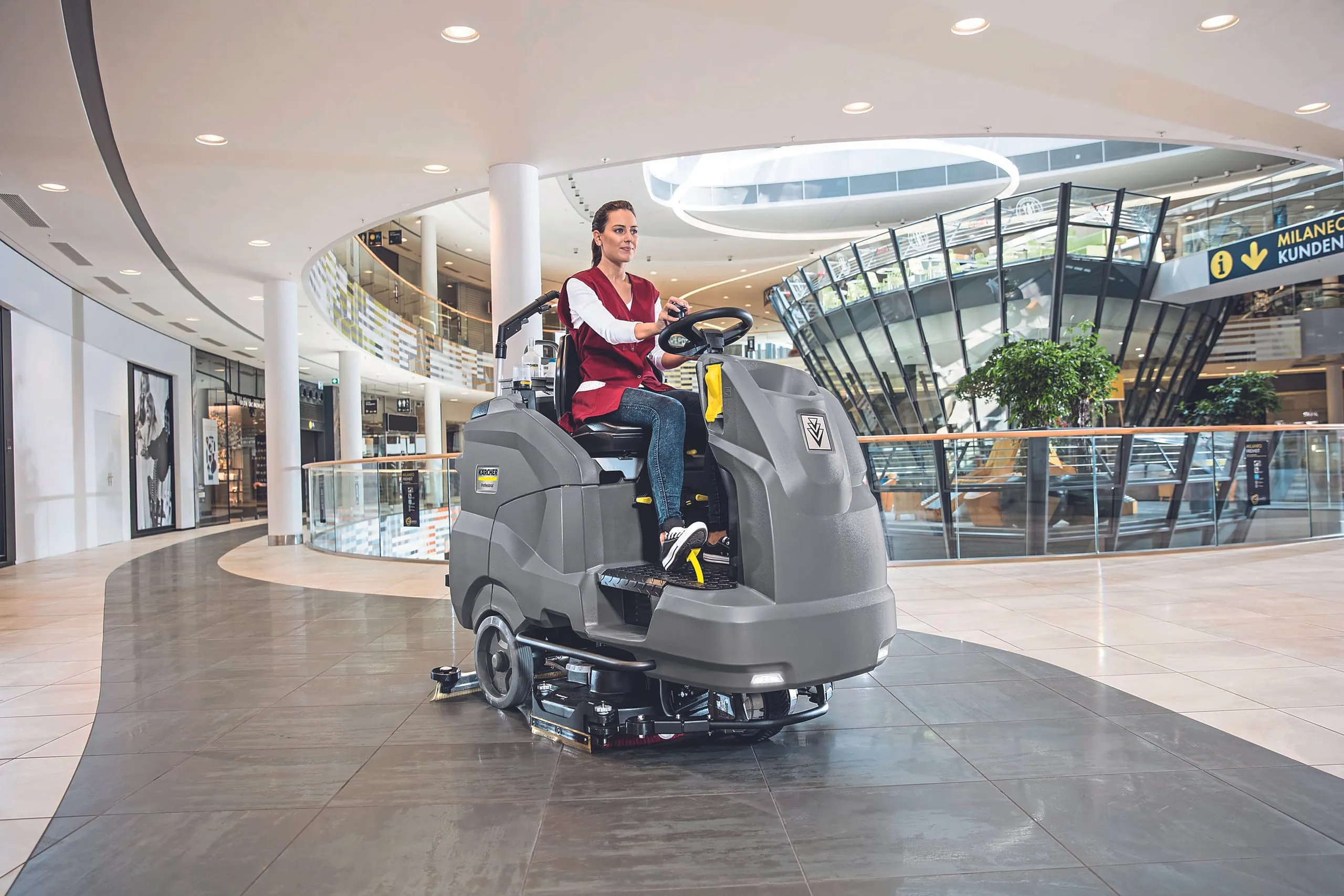 Um den Publikumsverkehr nicht zu behindern, wird die vollflächige Bodenreinigung meist zu Randzeiten durchgeführt. Kehrsaugmaschinen entfernen Staub und Sand schnell und effizient. Eine Trockenreinigung ist meist völlig ausreichend, solange keine haftenden Verschmutzungen vorhanden sind. Kehrsaugmaschinen sind auch für Granit- und Kautschukböden, also matte und polierte/glänzende Flächen geeignet. Dadurch lässt sich Zeit sparen und die Produktivität des Reinigungspersonals erhöhen, was vor allem bei dünner Personaldecke zu empfehlen ist.