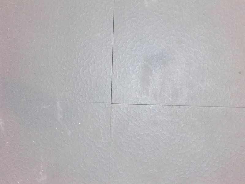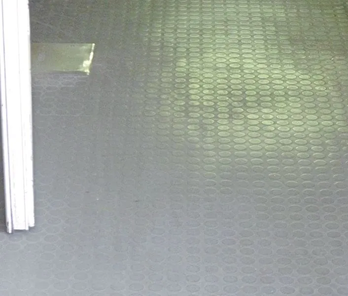 Anders stellt sichdie Situation bei strukturierten elastischen Bodenbelägen dar. Sie verursachen bei der Reinigung zwar erheblich weniger Probleme, sind aber auch nicht ganz einfach zu reinigen. Strukturierte Elastomerbeläge gibt es neben der Ausführung als Gumminoppenbelag auch in Hammerschlagoptik, gesandet mit oder ohne Verdrängungsnoppen sowie mit Riffelblechmuster. Elastomerbeläge aus Kautschuk neigen unter UV-Einstrahlung zur Auskreidung und Weichmacherwanderung – und zwar aus dem Gefüge andie Oberfläche.