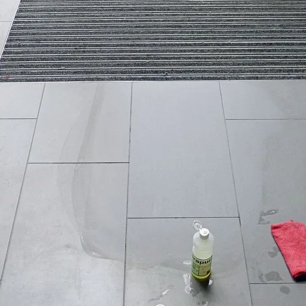 Die Reinigungschemie muss im Unterschied zur Mechanik sehr genau aufdie zu reinigende Belagart beziehungsweise deren Eigenschaften abgestimmtwerden. Schiefer und Terrakotta vertragen keine alkalische Reinigungschemie, deren pH-Wert größer als 9 ist. Dem Schiefer werden dadurch Öle entzogen und der Bodenbelag nimmt eine gräulich-matte Optik an. Beläge aus Terrakotta werden hingegen fleckig, wirkten ausgelaugt und saugen sich mit dem Grund- beziehungsweise Intensivreiniger voll.