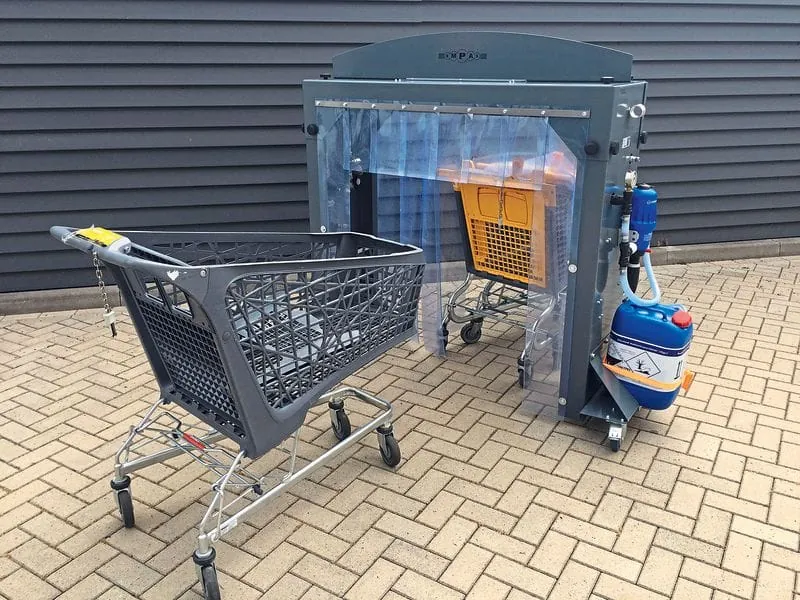 Das Reinigen und Desinfizieren von Einkaufswagen ist in Zeiten von Corona ein viel diskutiertes Thema. Ein neues Verfahren soll die bisher übliche manuelle Arbeit automatisieren.