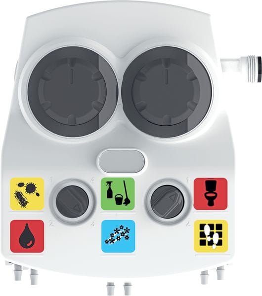 Ecomulti 4+2 von Brightwell Dispensers ist ein neues Spendersystem zum Verdünnen und Dosieren von konzentrierten Reinigungschemikalien. Es ermöglicht die Dosierung von bis zu sechs Reinigungskonzen­traten von einem Spender. Das System ist mit zwei separaten Venturisystemen ausgestattet, wodurch es sich für die Kombination von Anwendungen für hohe Fließraten (14 Liter/Minute) und niedrige Fließraten (4 Liter/Minute) eignet. Mit dem Gerät können Sprühflaschen, Eimer und Bodenreinigungsmaschinen befüllt werden. Brightwells patentierte Verdünnungstechnologie sorgt für ­genaue Verdünnungsverhaltnisse und einfache Handhabung.