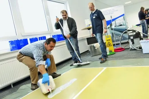 Auch der Bereich Grundreinigung und Einpflege von elastischen Hartbodenbelägen gehört zum Schulungsangebot.