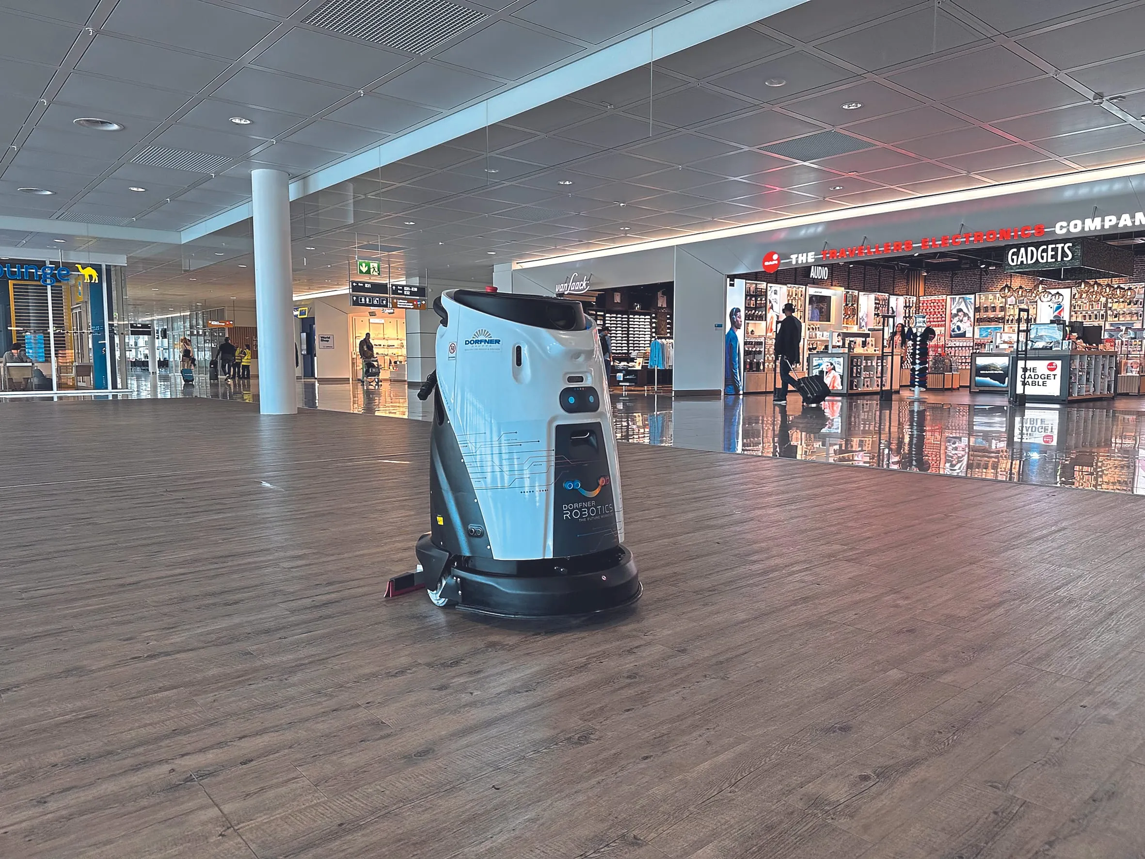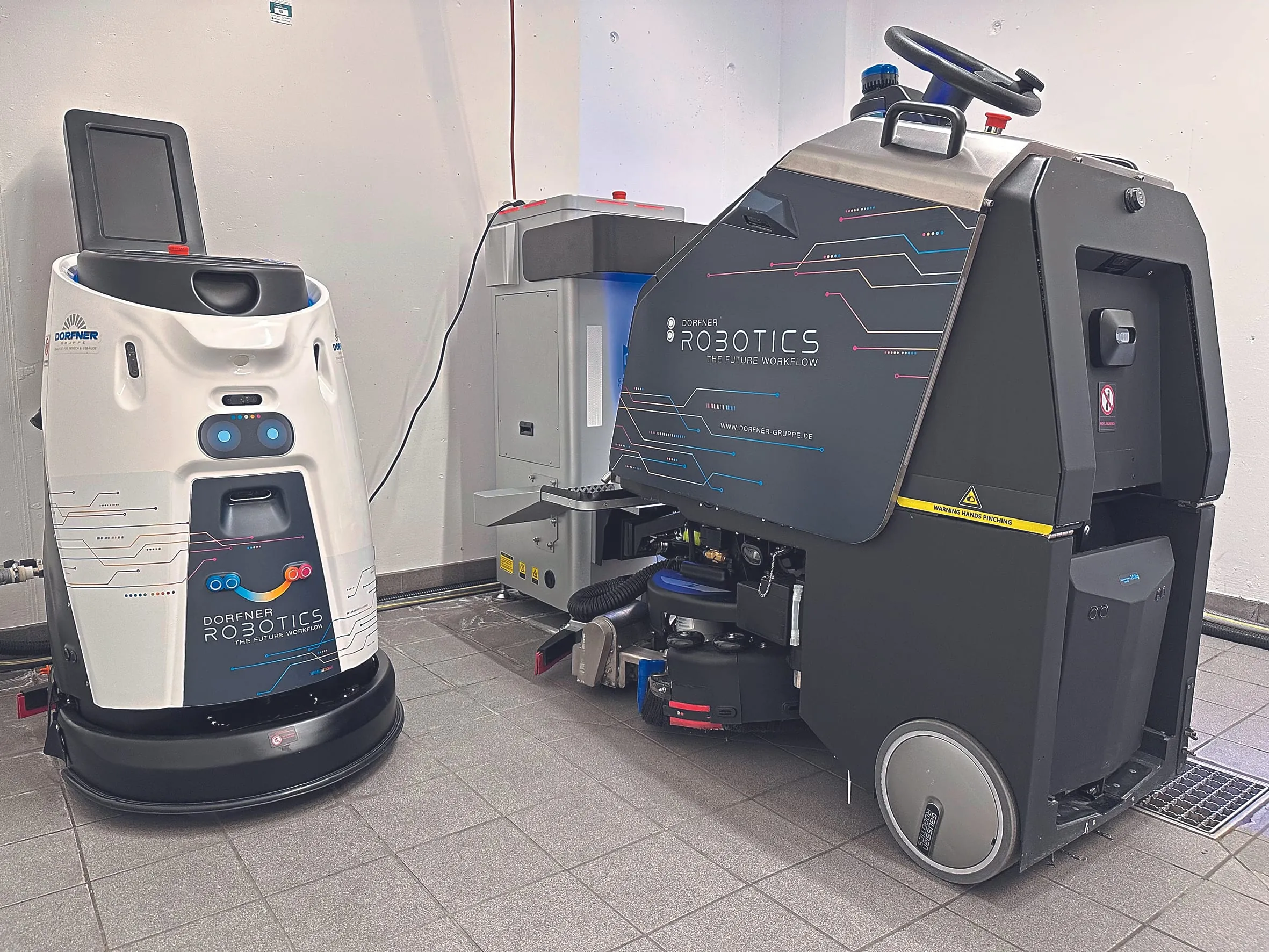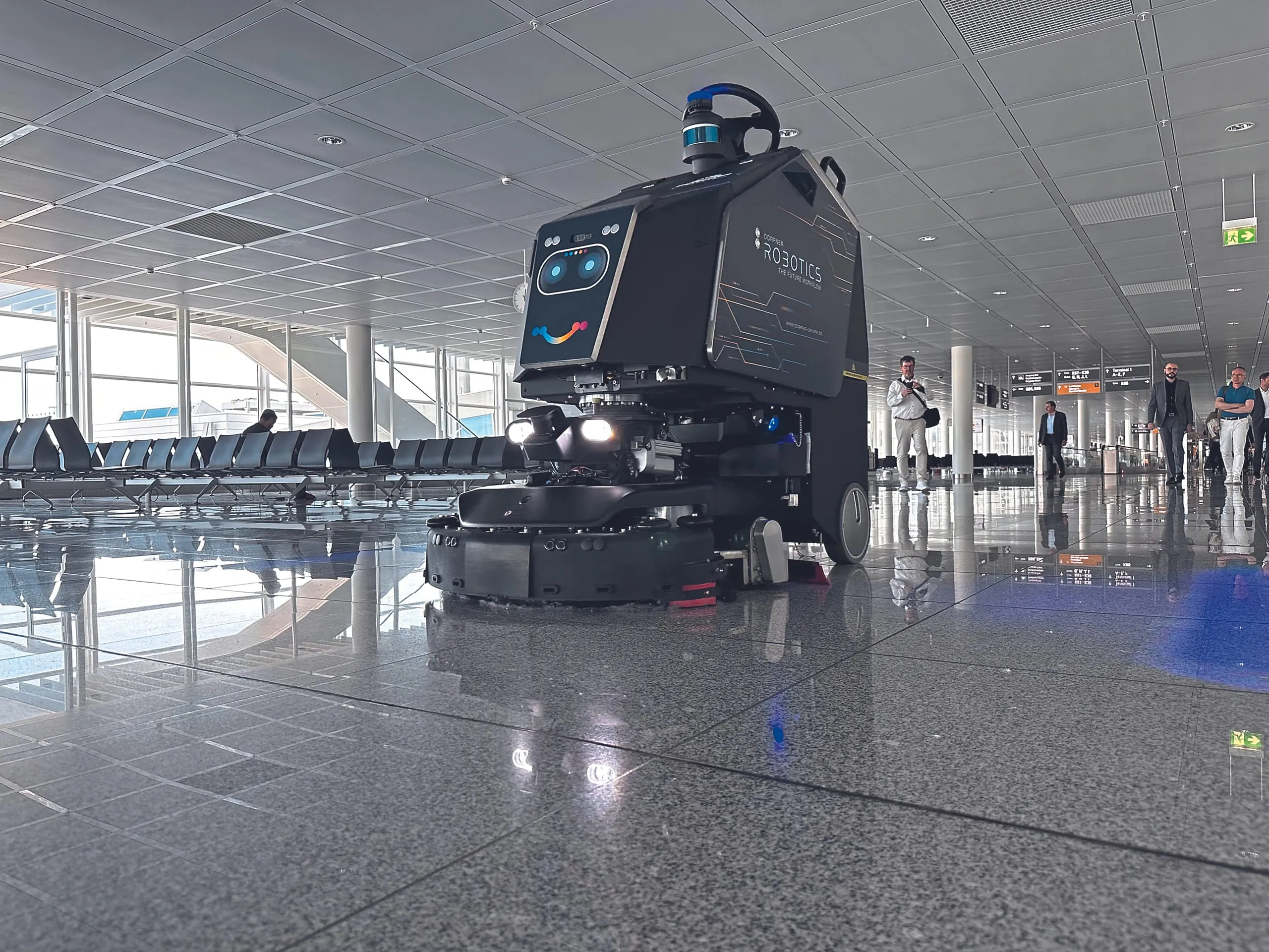 Dorfner hat für den Bereich Robotik im Hause eine eigene Abteilung geschaffen, die sich mit dem Thema auseinandersetzt und mit verschiedenen Herstellern von autonomen Reinigungsmaschinen im Dialog ist. Dabei ist man bewusst nicht auf einen Hersteller fixiert, sondern führt in Objekten, in denen der Einsatz von Robotern angedacht ist, Tests mit verschiedenen Geräten durch und entscheidet sich dann objektspezifisch für einen Anbieter beziehungsweise ein Gerät. Im Falle des Flughafens fiel die Wahl schließlich auf Gausium Robotics.