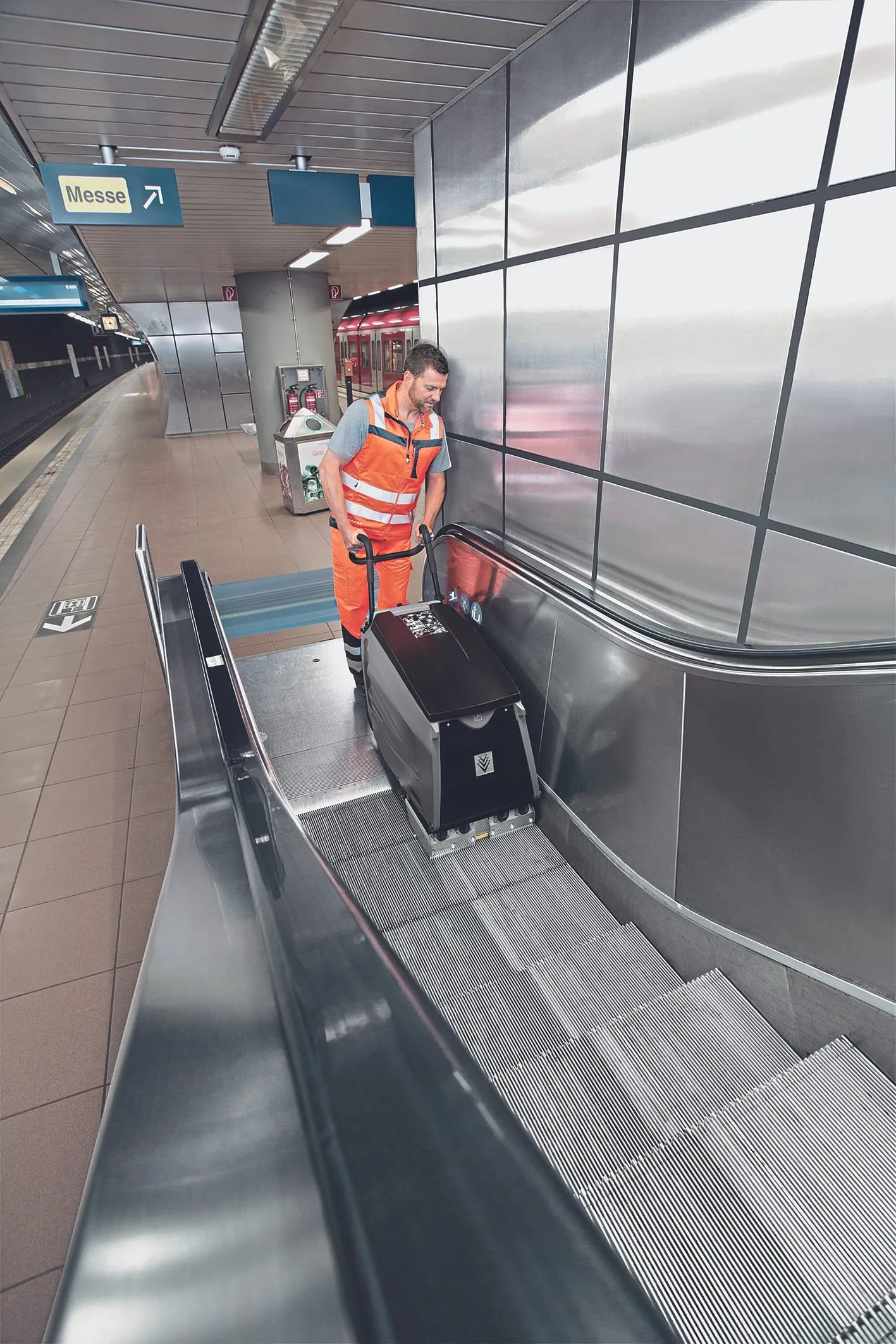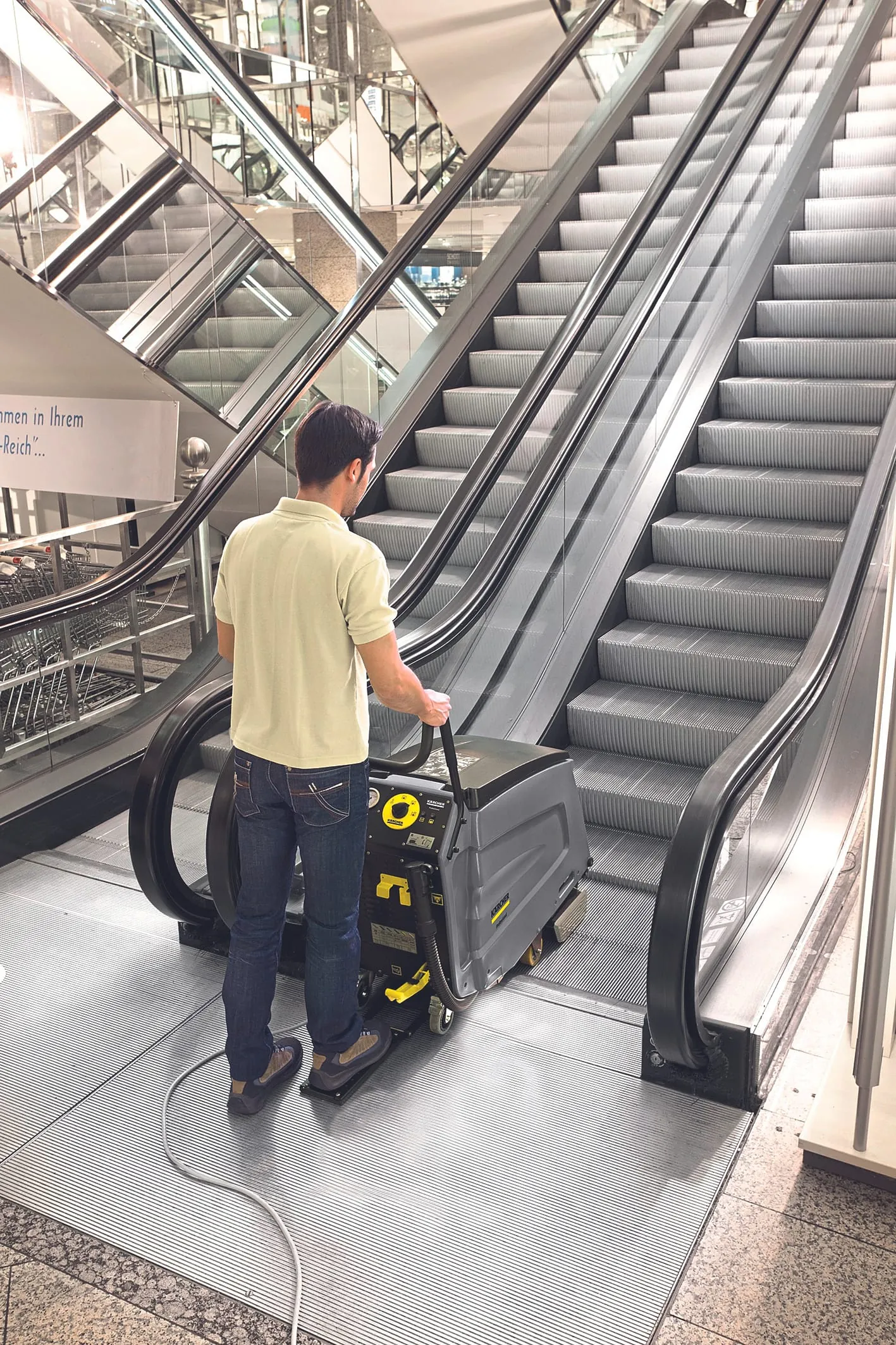 Arbeiten mit dem Rolltreppenreiniger