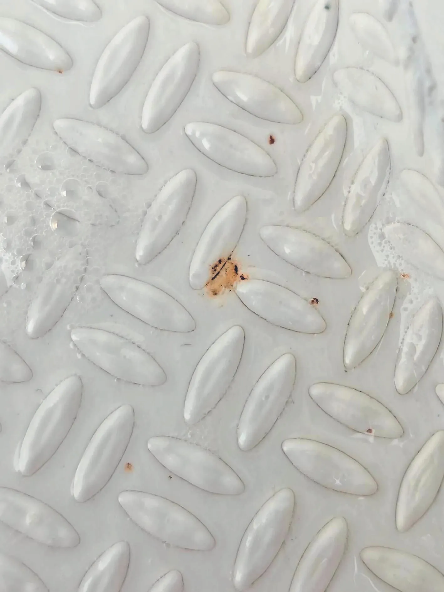 Die optischen Reinigungsergebnisse vari­ierten je nach Tiefe und Verweildauer der Partikel. Bei lediglich oberflächlichem Flugrost konnte eine nahezu ­vollständige Wiederherstellung erreicht werden. In Bereichen mit längerer Verweildauer oder Wasserstau blieben teils pigmentierte Schatten oder Mattierungen sichtbar. ­Diese beeinträchtigen weder Funktion noch Hygiene, können unter bestimmten Lichtverhältnissen jedoch erkennbar bleiben. Bei der optischen Beurteilung ist die übliche Nutzung zu berücksichtigen. Sie bezieht sich hierbei auf einen gefüllten Pool mit üblicher Wasserbewegung.