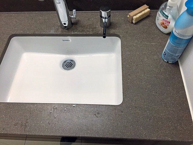 Die Materialien lassen eine klassische Standardreinigung nicht mehr zu. Jetzt kann man eins und eins zusammenzählen: Was passiert wohl, wenn in einem Objekt sehr kalkhaltiges Wasser vorhanden und der Einsatz von kalklösenden Produkten ausgeschlossen ist?! In solchen Fällen hilft nur ein offenes Gespräch mit dem Auftraggeber, um gemeinsam eine Lösung zu finden. Der Betreiber/Inhaber hat ja auch großes Interesse an einer fachgerechten und hygienischen Reinigung. Zur Veranschaulichung ein Auszug aus einer Reinigungsempfehlung eines großen deutschen Premium-Armaturenherstellers: "Verwenden Sie für die Reinigung keine kratzenden Schwämme oder Mikrofasertücher. Auch Scheuermittel, lösungsmittelhaltige, alkalische oder saure Reiniger, Kalkentferner, Haushaltsessig und Reiniger mit Essigsäure sind nicht zu verwenden." Da kann man nur sagen: Viel Erfolg bei der Arbeit mit Neutralreinigern und dem guten, alten Lochleder!