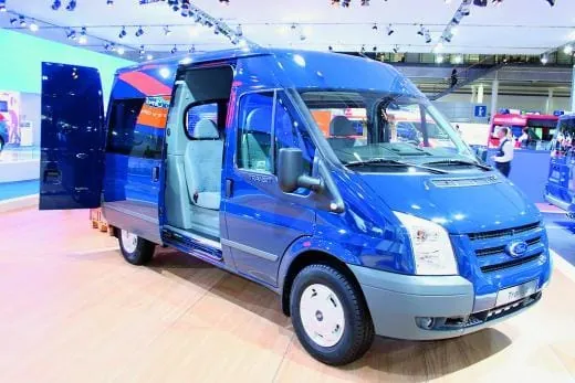 Rechts Artenreicher Ford Transit: Wahlweise gibt es Front- oder Heckantrieb, diverse Branchenausstattungen und z.B. eine Teilverglasung mit integrierter Doppelkabine.